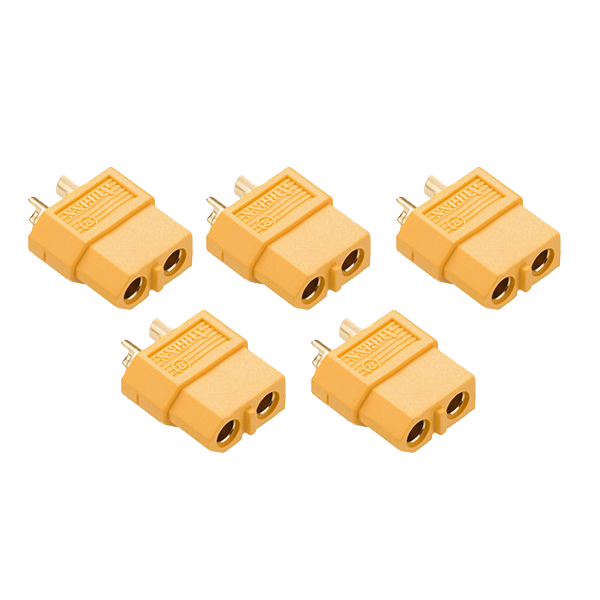 Набор из 5 штук оригинальных разъемов Amass XT60. Это розетки (гнезда) на ток 60А — самый популярный стандарт в мире для аккумуляторов радиоуправляемых моделей и портативных устройств. Покупка набора выгодна для мастерских и увлеченных моделистов.