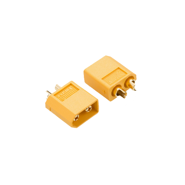 Стандартная вилка XT60. "Золотой стандарт" для подключения аккумуляторов в FPV, дронах, машинках и вертолетах. Надежный контакт, легкое соединение, выдерживает ток до 60А. Продается поштучно.
